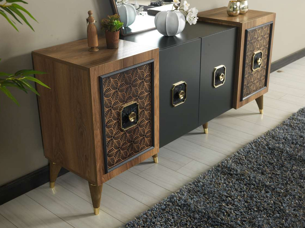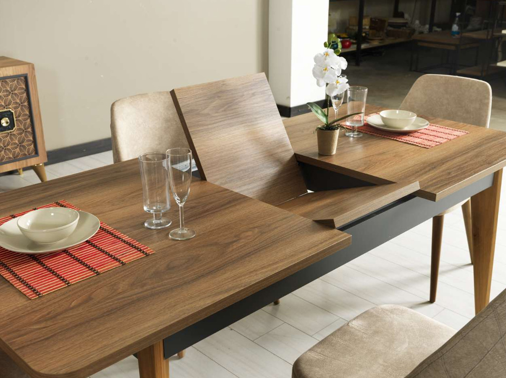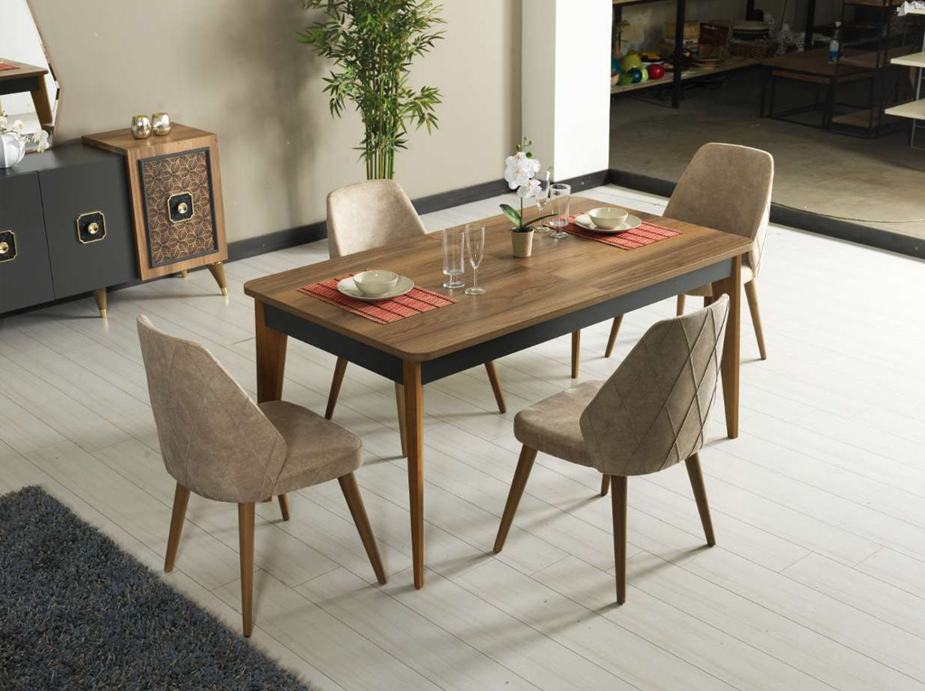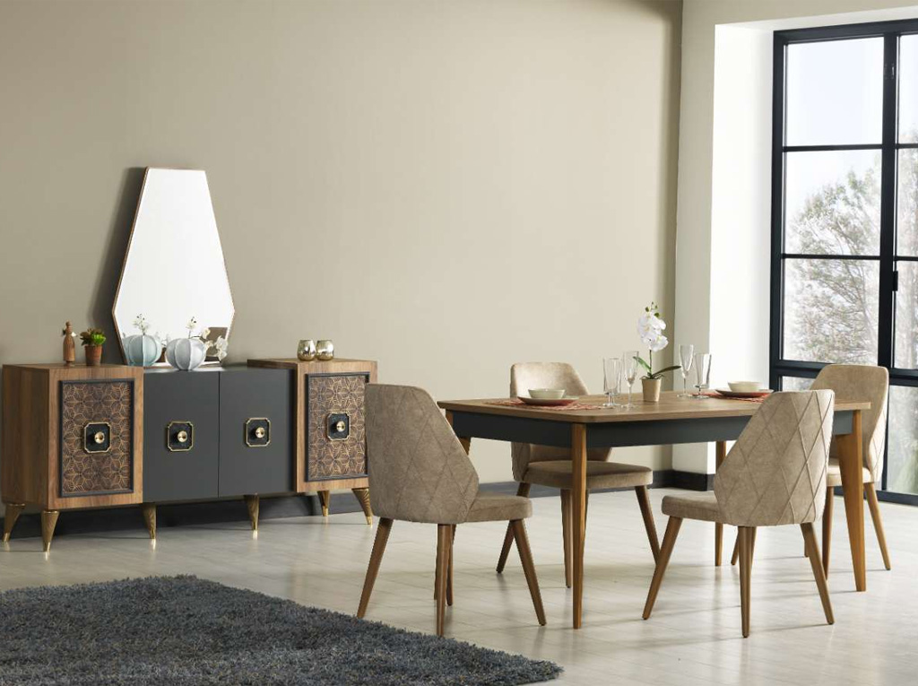 Yemek Odası Takımları Ürün 1 masa, 6 sandalye, 1 aynalı konsol, 1 gümüşlük ve 1 dresuardan oluşup her ürün opsiyoneldir