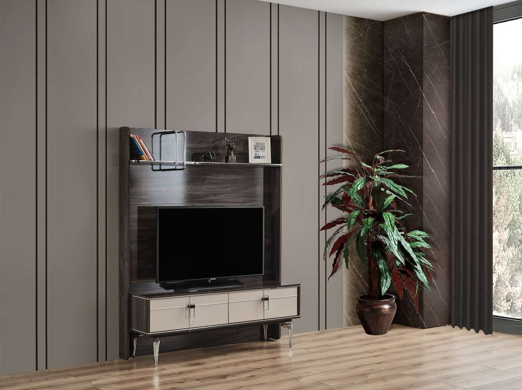 Hilton 138 Tv Ünitesi 1 adet TV sehpası ve raflı fondan oluşmaktadır. Bu ürün arka fon ile kompakt bir tasarımdır. Duvara montaj gerektirmez.