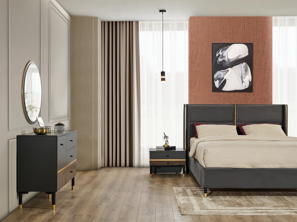 İnegöl Mobilya'nın Defne Yatak Odası, tarzınızı yansıtan modern ve çağdaş bir yatak odası düşleyenler için ideal bir seçenektir. Estetik tasarımı, yüksek kaliteli malzemeleri ve işlevselliğiyle, konforlu ve rahat bir uyku alanı oluşturmanızı sağlar. Defne Yatak Odası, evinizdeki yaşam alanınızı tamamlayacak bir şıklık sunar.