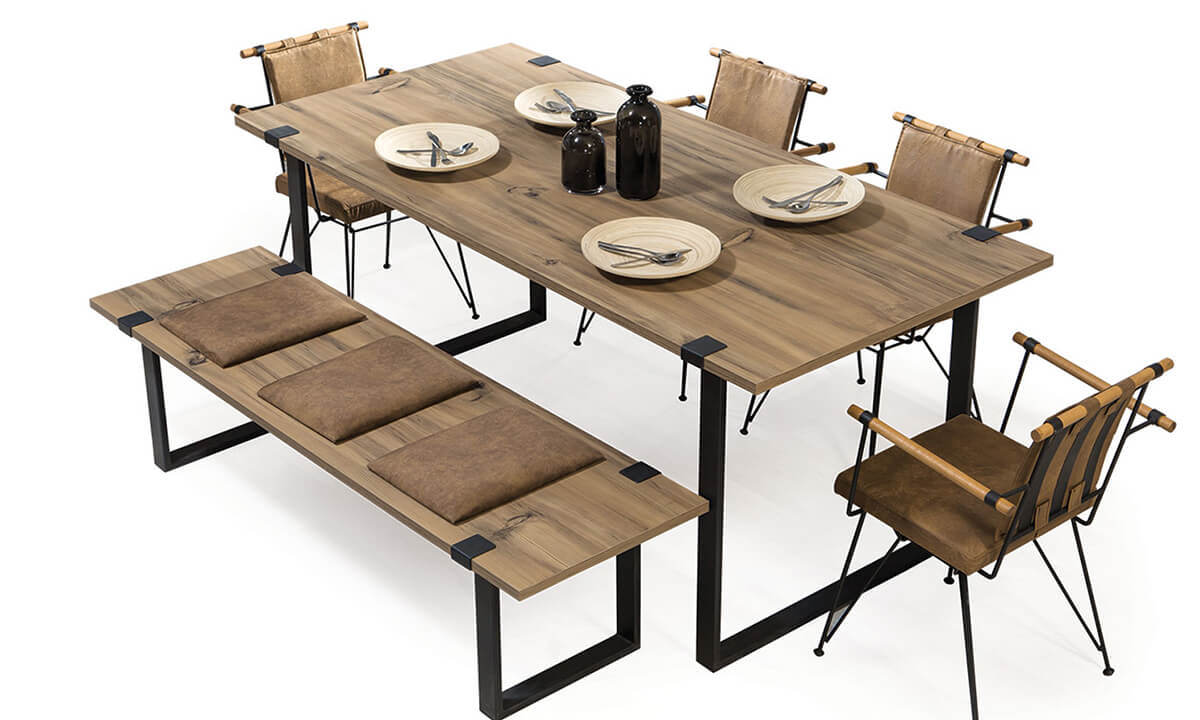 Takımın ana parçası olan yemek masası, zarif bir tarza sahiptir. Geniş bir yüzeye sahip olan masa, yemeklerinizi aileniz ve misafirlerinizle keyifle paylaşmanız için idealdir. Ahşap veya cam tablo seçenekleri arasından tercih yapabilirsiniz. Ayrıca, takımın parçası olan sandalyeler rahat bir oturum sunar ve şık döşemeleriyle de dikkat çeker.
