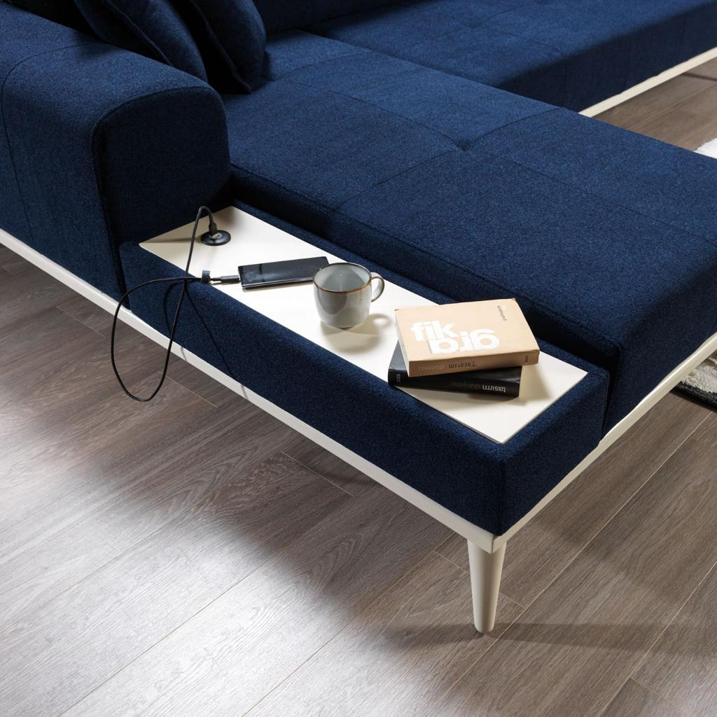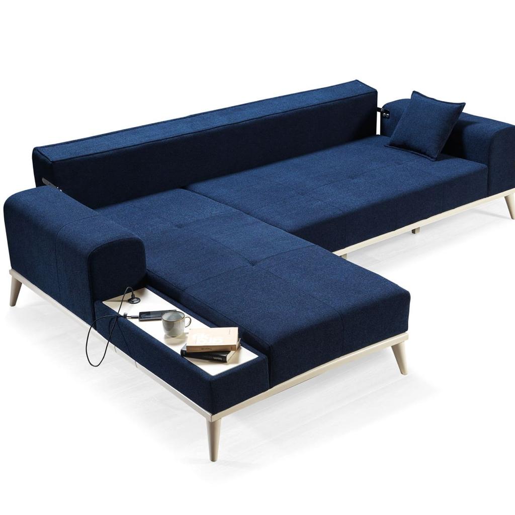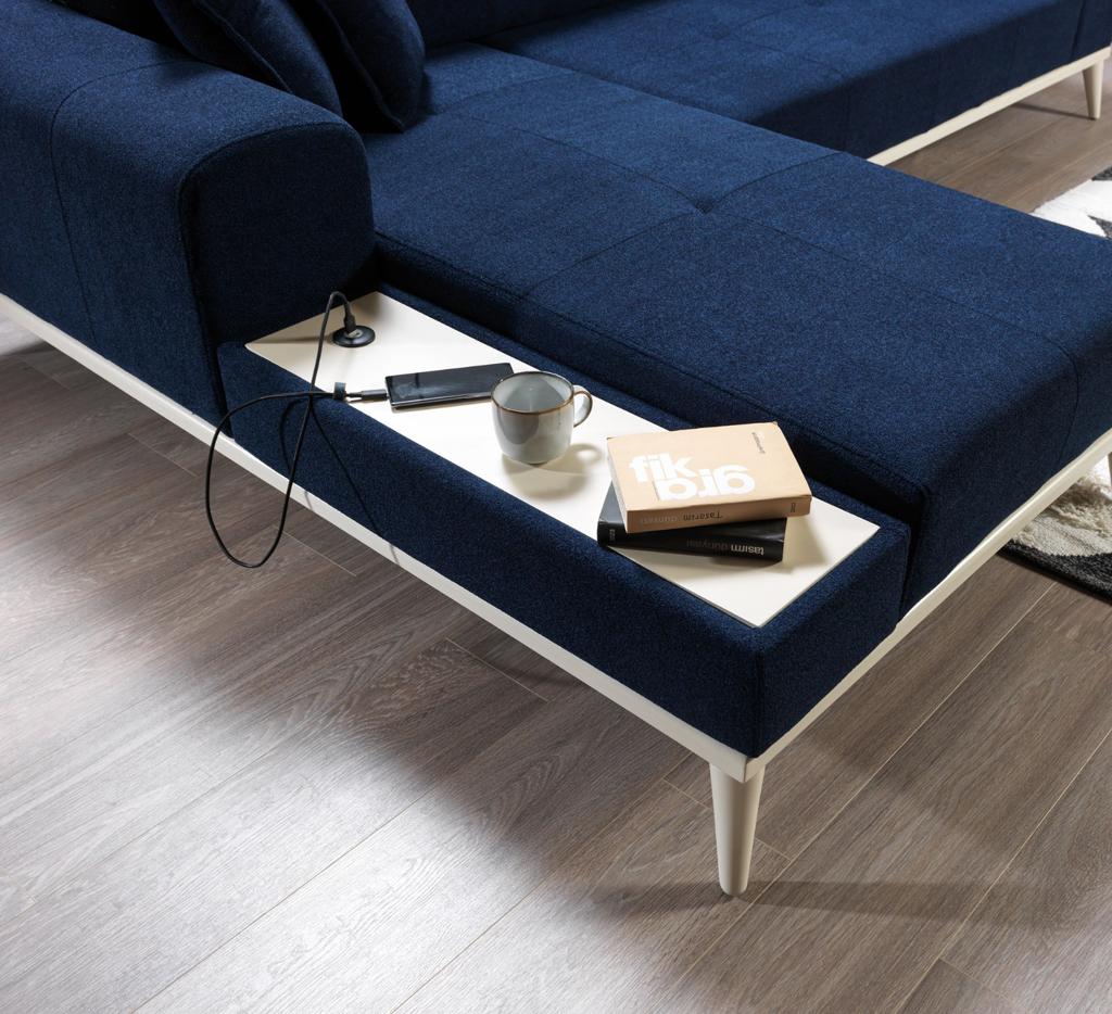 Köşe koltuk takımının geniş oturma alanı, aileniz ve misafirlerinizle keyifli bir şekilde zaman geçirmenizi sağlar. Kolların yanındaki yerleşik depolama bölmeleri, dergi, kitap veya TV kumandaları gibi eşyalarınızı düzenli bir şekilde saklamanıza yardımcı olur. Ayrıca, yatak olma özelliği sayesinde konuklarınız için ekstra bir yatak alanı sağlar.