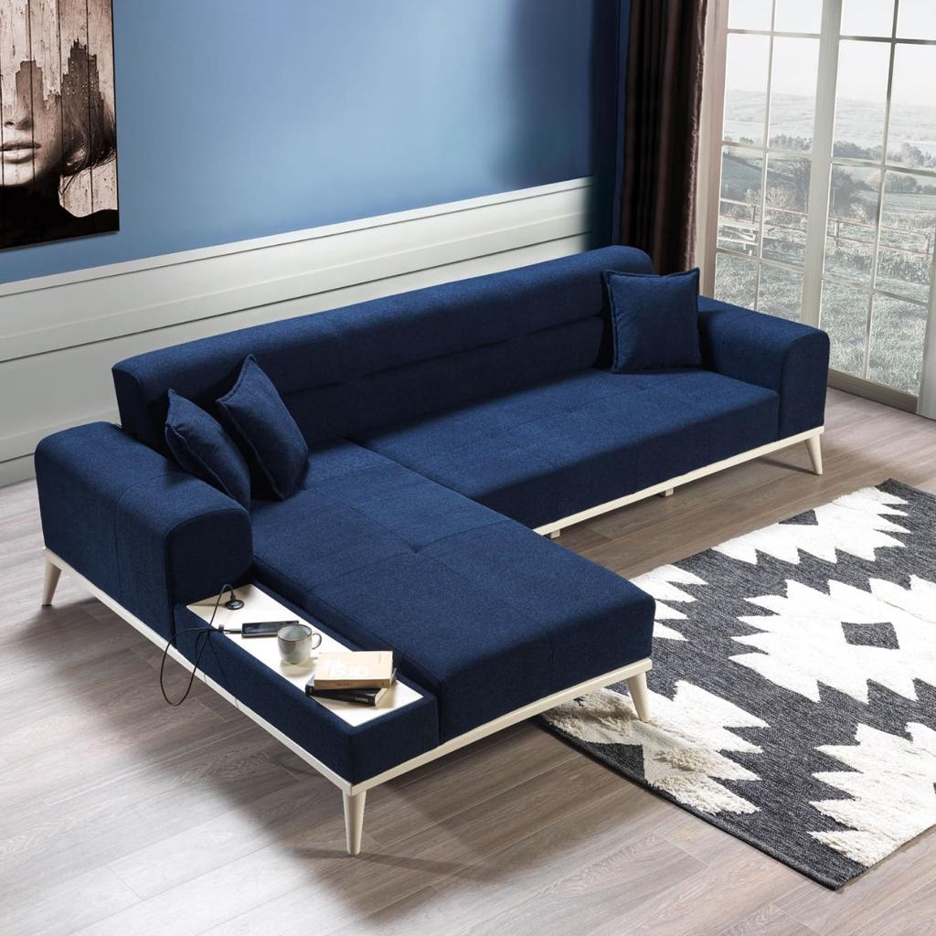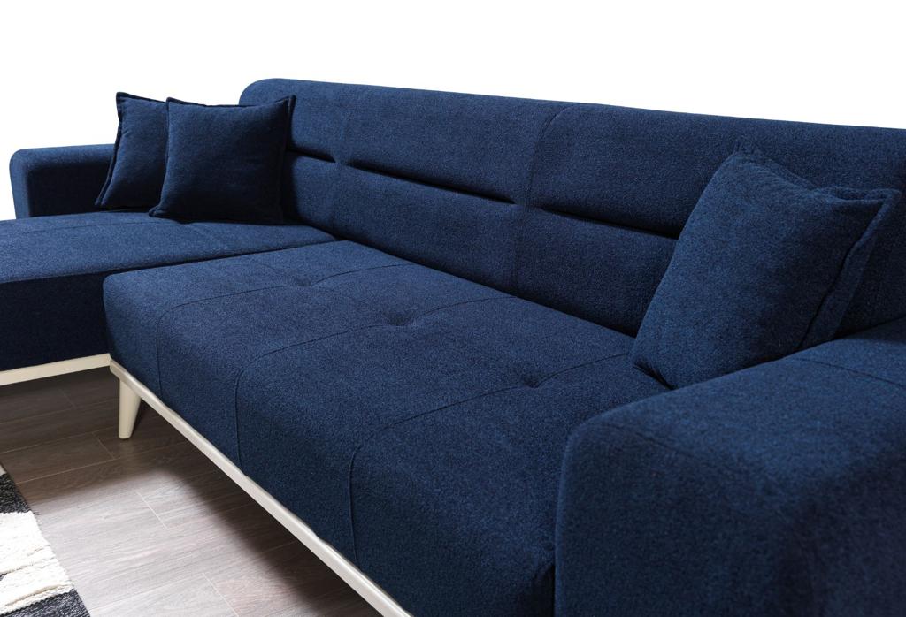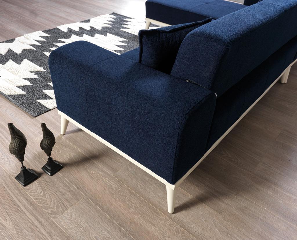 Tasarımı, şık ve çağdaş bir tarzı yansıtırken, mavi renk seçeneğiyle ferah bir atmosfer oluşturur. Mavi İnci Köşe Koltuk Takımı, her türlü dekorasyon tarzıyla uyum sağlayabilen çok yönlü bir parçadır. Oturma odası, salon veya stüdyo daire gibi çeşitli yaşam alanlarında mükemmel bir seçenektir.