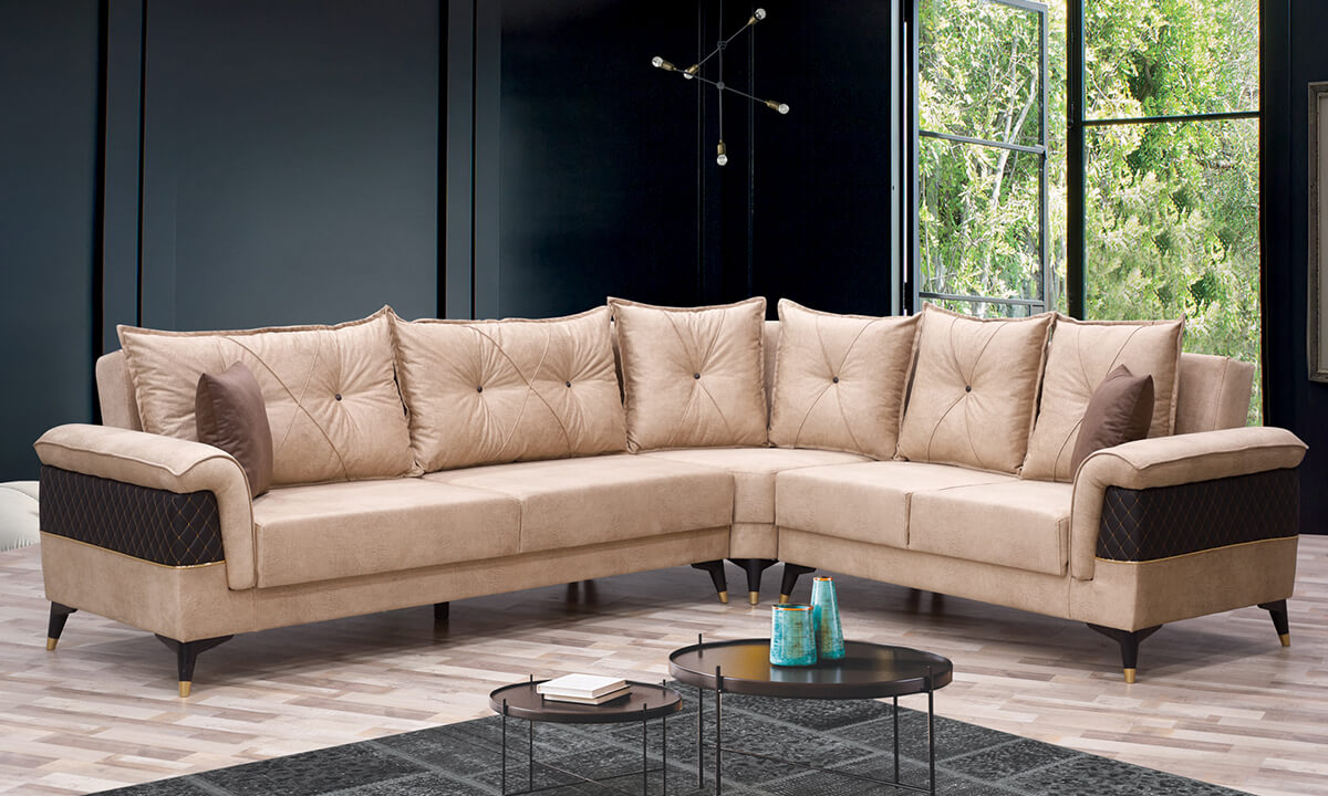 Bu köşe koltuk takımının estetik açıdan da benzersiz bir görünümü vardır. Modern ve şık tasarımıyla her türlü dekorasyon tarzına uyum sağlar. Zarif çizgileri, dikkat çekici detayları ve özenle seçilmiş renkleriyle yaşam alanınıza sofistike bir hava katmaktadır.