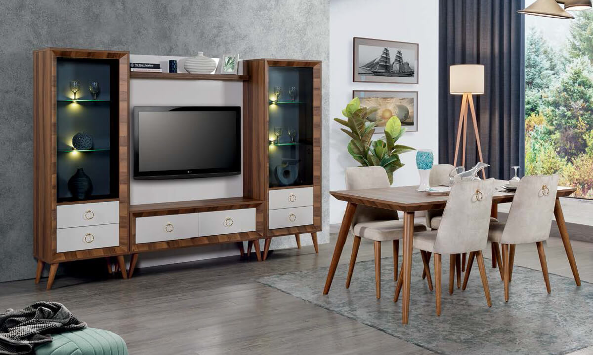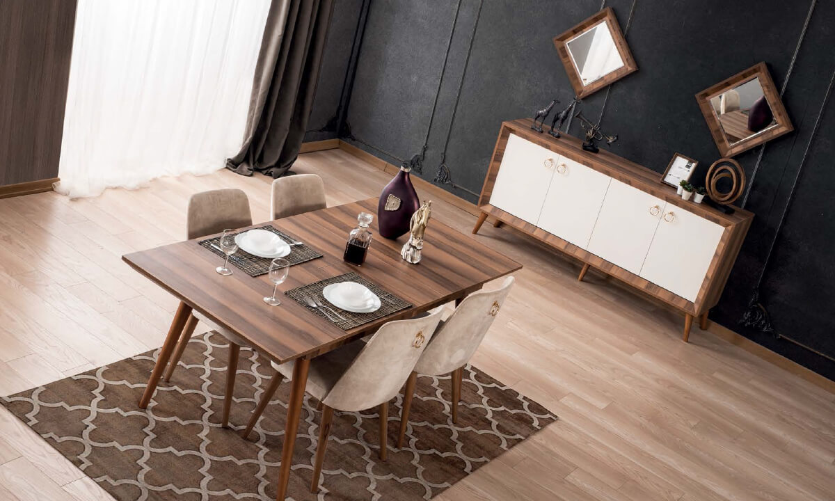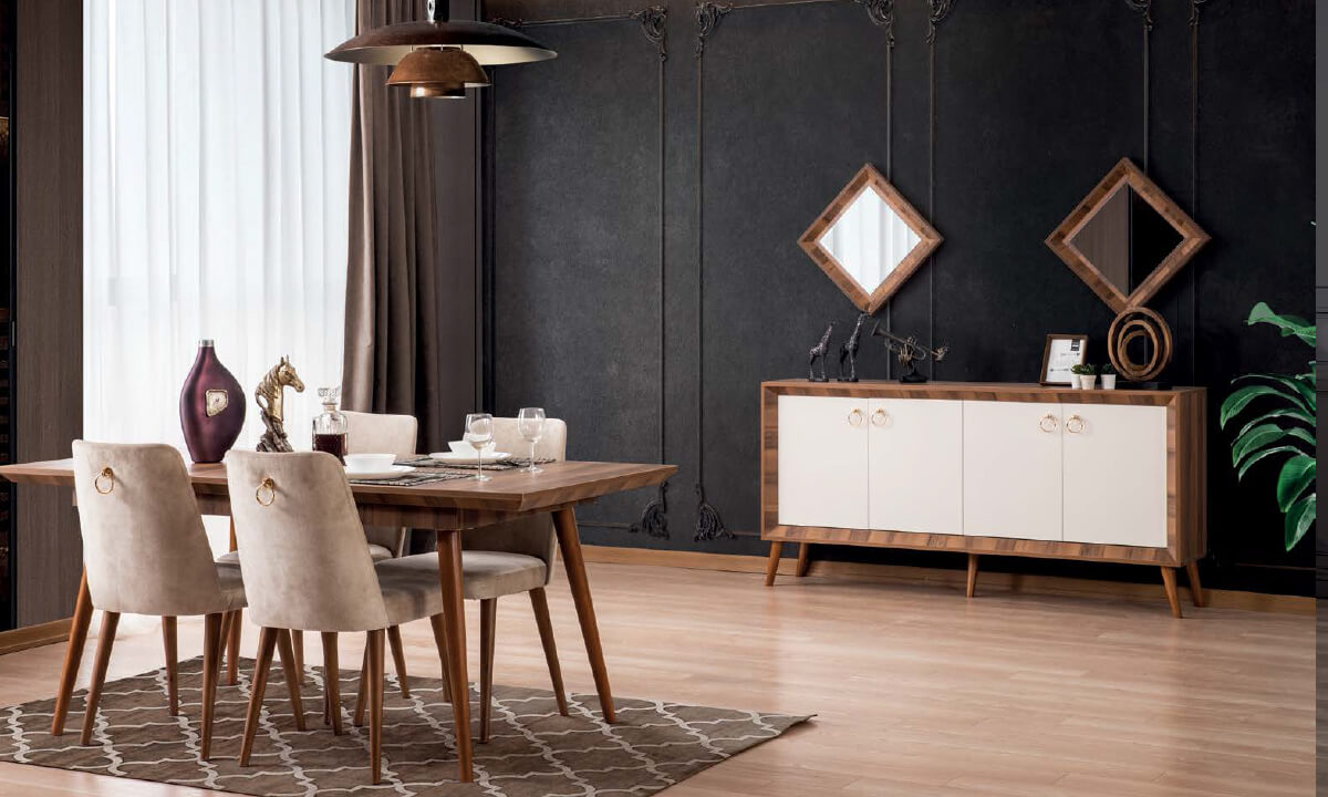 İnegöl Mobilya Nisan Yemek Odası TakımıAğaç deteylarGürgen ayaklarÖzel ölçü seçeneğiSandalye kumaş renk seçeneği2 yıl garanti