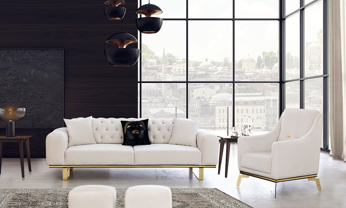 Özgü Beyaz Koltuk Takımı Kombinasyonu: 3+3+1+1