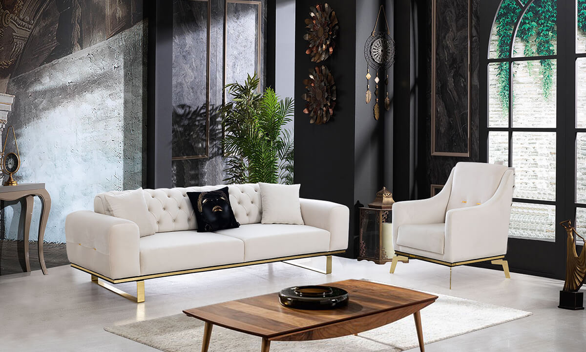 Beyaz rengi sayesinde Özgü Beyaz Koltuk Takımı, açık ve ferah bir atmosfer oluşturur. Modern dekorasyon için krem, bej veya gri tonları ile kombinlenebilir. Lüks ve sofistike bir görünüm için metal veya cam aksesuarlar, minimal dekoratif objeler ve doğal dokulu halılar uyum sağlar. Ana renk (koltuk), tamamlayıcı nötr tonlar (halı, perde) ve vurgu renkleri (kırlent, aksesuar) dengeli kullanıldığında, Özgü Beyaz Koltuk Takımı mekânın hem görsel hem de psikolojik konforunu artırır.