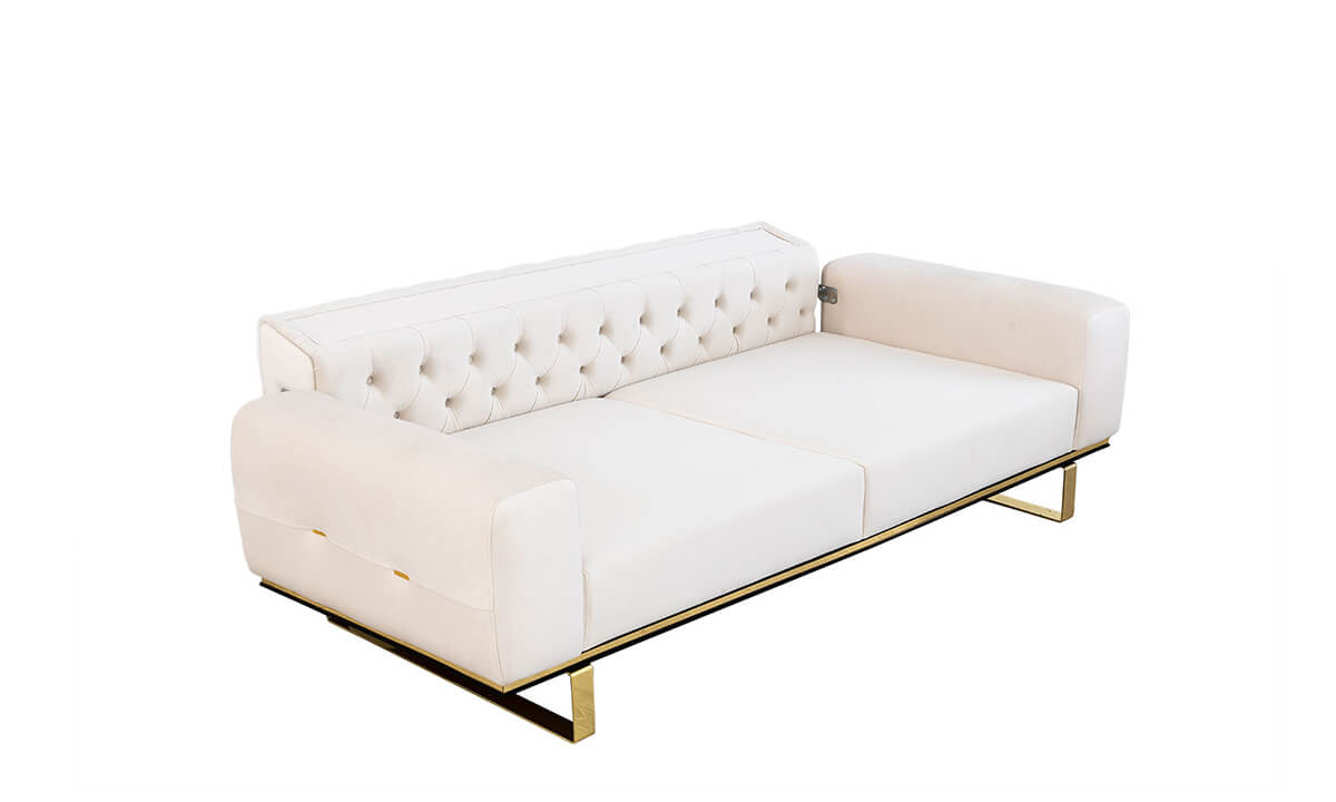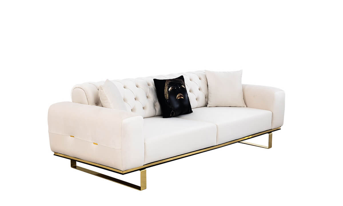 Özgü Beyaz Koltuk Takımı, yüksek kalite standartlarında malzemelerle üretilmiştir. Babyface kumaş kadifemsi, yumuşak ve silinebilir yapısıyla hem konfor hem de kolay temizlik sağlar. Fırınlanmış gürgen iskelet, çatlama veya eğilme sorunlarını minimuma indirir. Metal ve gürgen ayak seçenekleri hem dayanıklılığı hem de estetik görünümü artırır. Dikişler, kenar birleşimleri ve sünger yerleşimleri profesyonel işçilikle tamamlanmıştır.