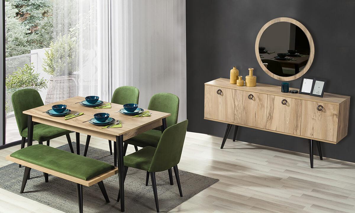 Premium Yemek Odası Takımı, yemek odanızı birinci sınıf bir restoran veya lüks bir otel atmosferine dönüştürmek için mükemmel bir seçimdir. Hem görsel olarak çekici hem de kullanımı rahat olan bu takım, misafirlerinizi etkilemek ve ailenizle unutulmaz yemek deneyimleri yaşamak için mükemmel bir ortam sunar. Eşsiz tarzı ve kalitesiyle, Premium Yemek Odası Takımı, lüks mobilya sevenlerin beklentilerini karşılayacak bir seçenektir.