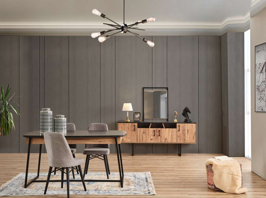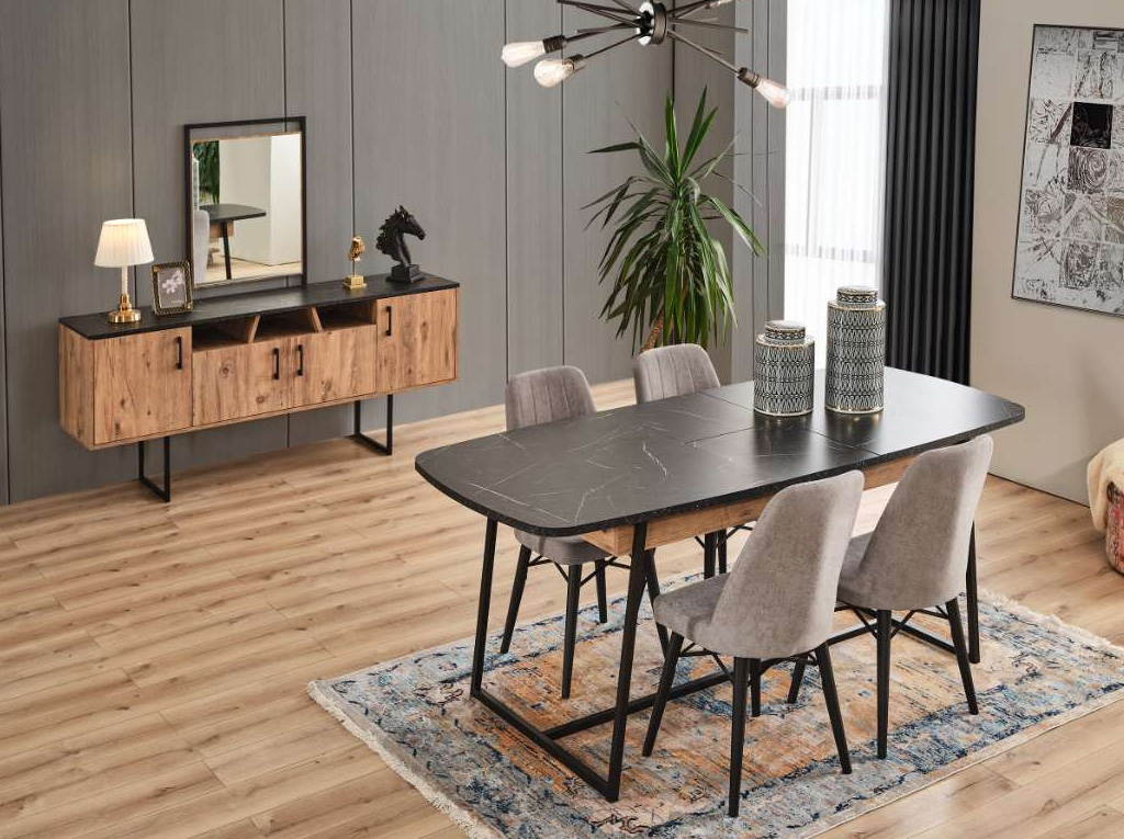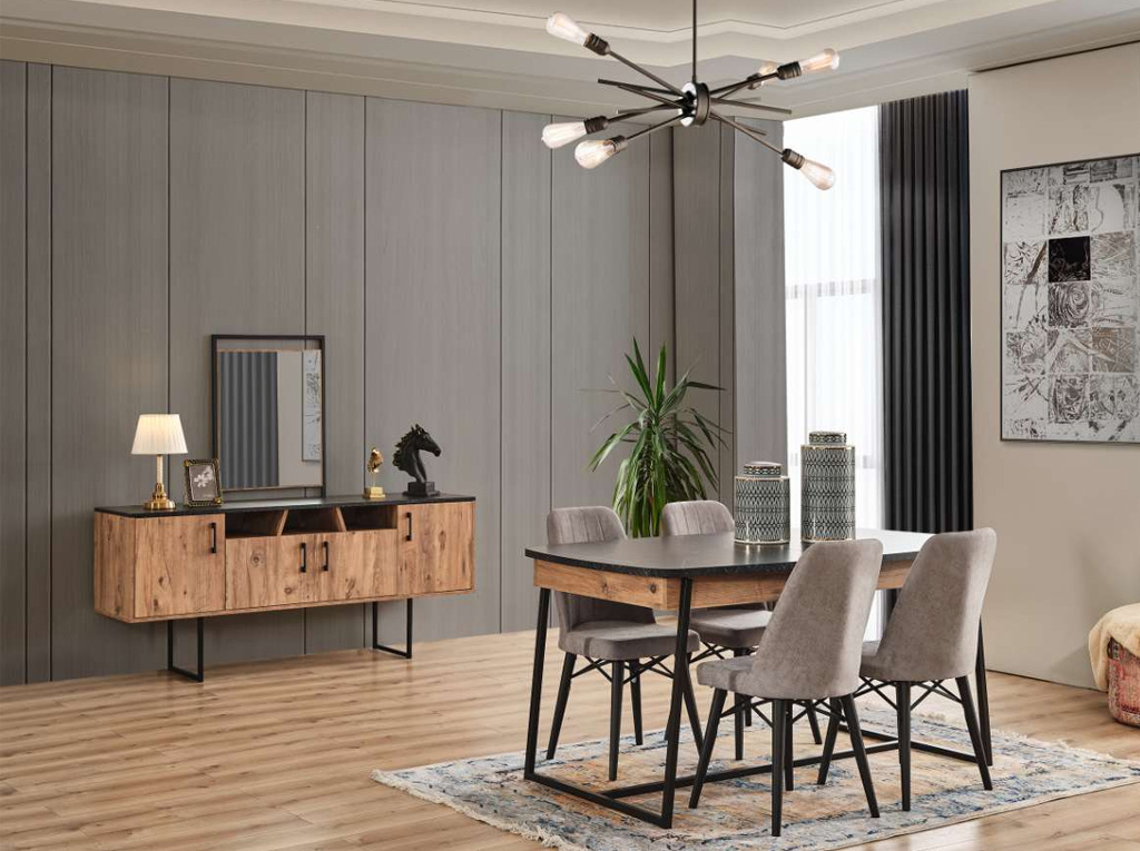 Yemek Odası Takımları Ürün 1 masa, 6 sandalye, 1 aynalı konsoldan oluşup her ürün opsiyoneldir